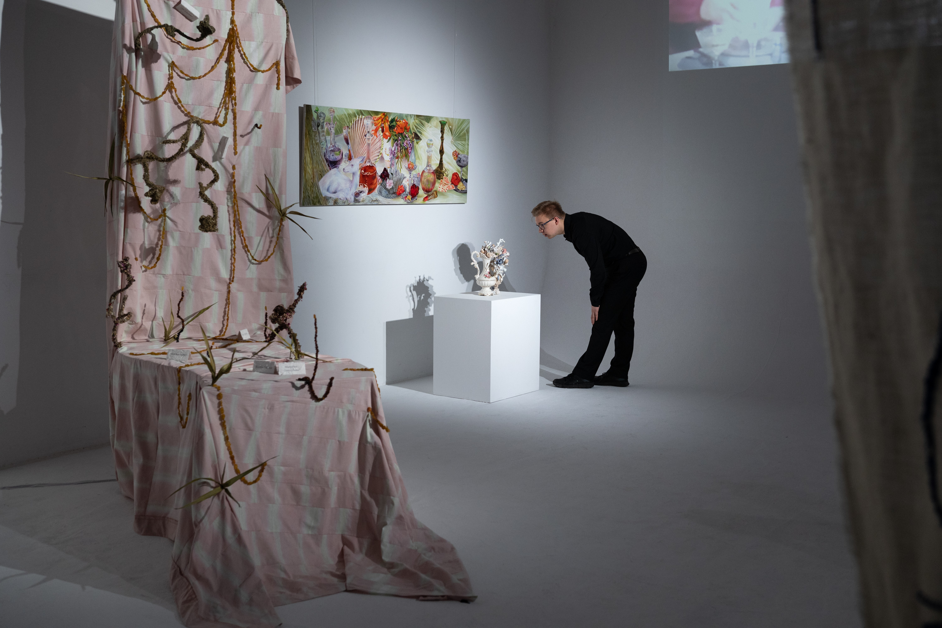 Na wystawie zatytułowanej “W zwierciadle niejasno” zaprezentowane zostały prace, które swoją formą wymykają się prostej kwalifikacji. „Sztuki wizualne od samego swojego zarania opierały się na łudzeniu zmysłów” - mówi tekst kuratorski wystawy „W zwierciadle niejasno”.