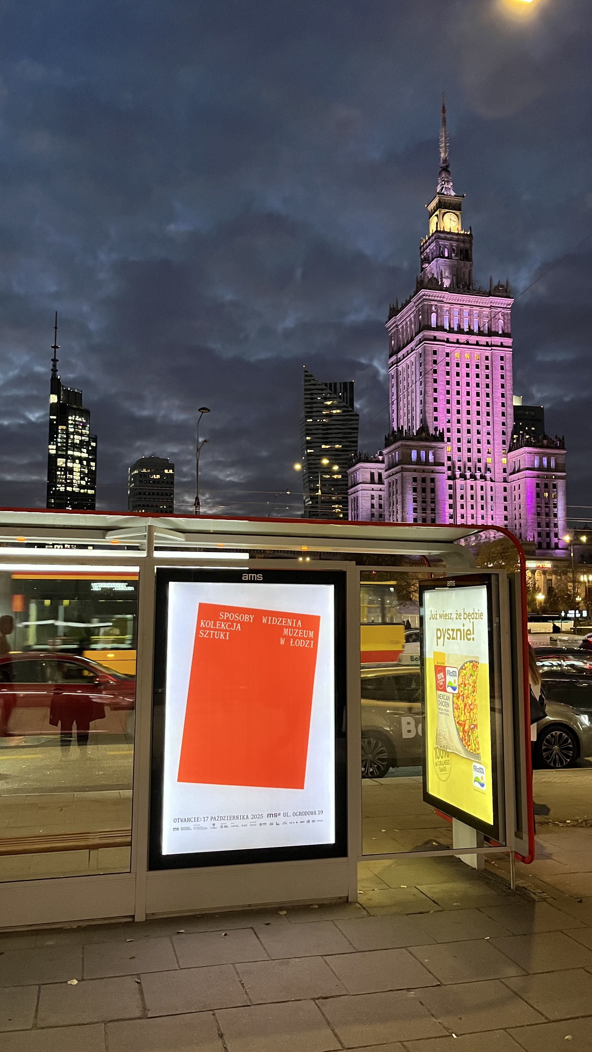 Wybraliśmy kilkadziesiąt zróżnicowanych nośników, strategicznie usytuowanych w pobliżu instytucji kultury w największych miastach Polski. Reklamy cyfrowe oraz drukowane pojawiły się na ulicach Warszawy, Krakowa, Poznania, Wrocławia i Trójmiasta między pierwszym a trzydziestym pierwszym października 2025 roku. Dodatkowo w Warszawie i Trójmieście wyklejonych zostało siedemset pięćdziesiąt plakatów miejskich. Działania pozwoliły na uzyskanie niemal dwóch milionów kontaktów i wyświetleń.