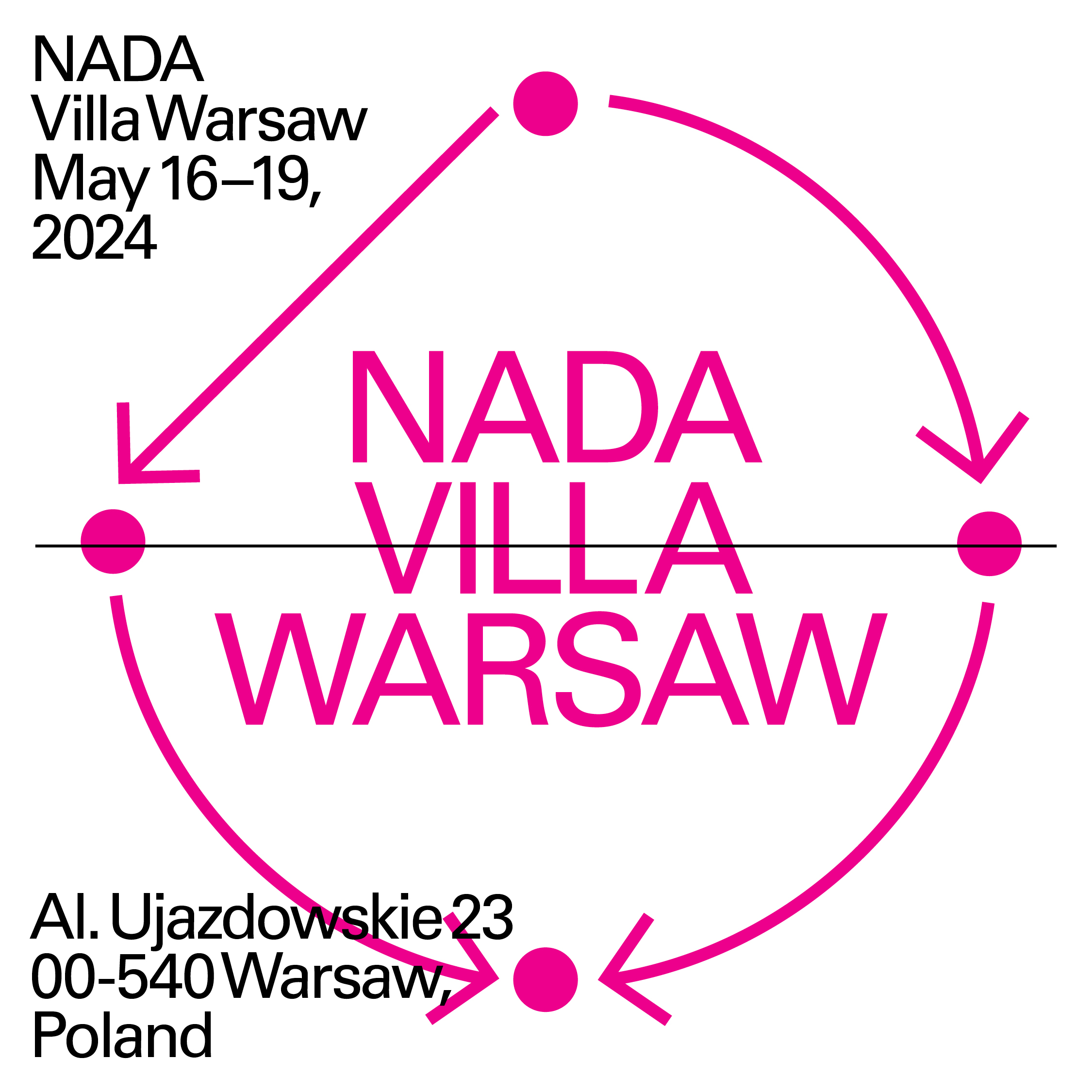 NADA Villa Warsaw to nowa inicjatywa artystyczna zorganizowana przez New Art Dealers Alliance (NADA) we współpracy z Art Warsaw, reprezentowanego przez Michała Kaczyńskiego z galerii Raster, Martę Kołakowską z LETO Gallery oraz Joannę Witek-Lipka z Warsaw Gallery Weekend.